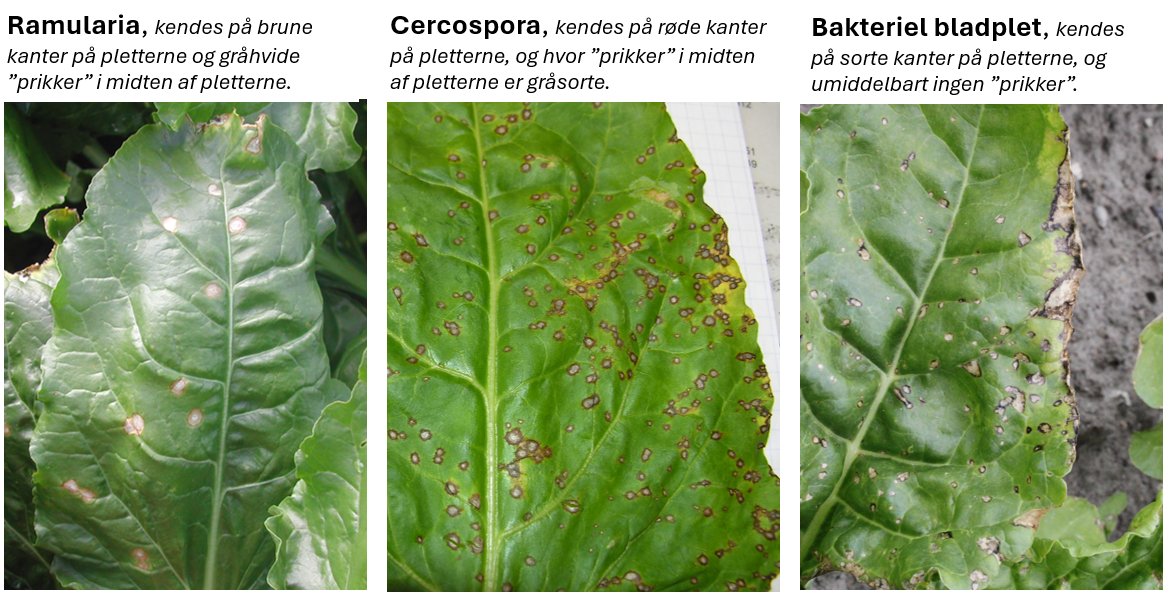 Der kan komme sekundære svampe (Alternaria og Bakteriel bladplet) og brunfarvning i de gamle skader på roebladene fra skadedyrene. Disse kan ikke bekæmpes med bladsvampemidler.