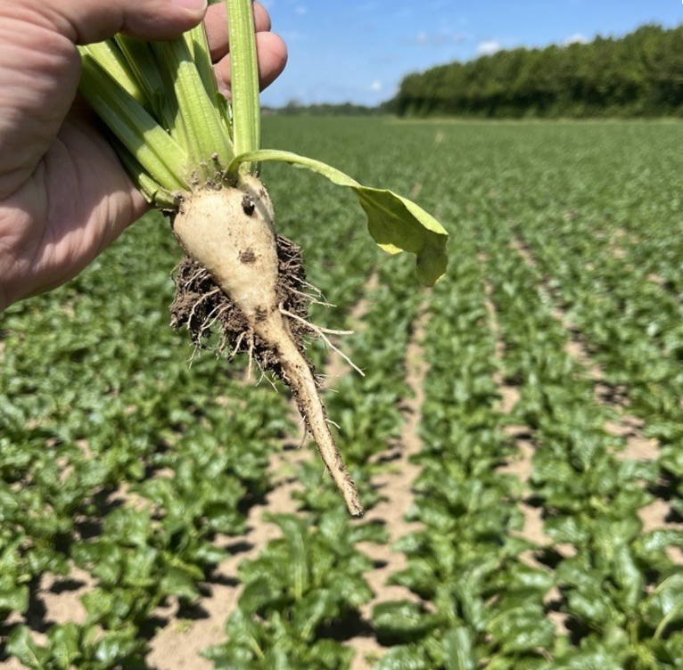 Der er kommet god vækst i de fleste marker, men det er tydeligt at se, hvor roerne endnu ikke har fået fat i gødningen.