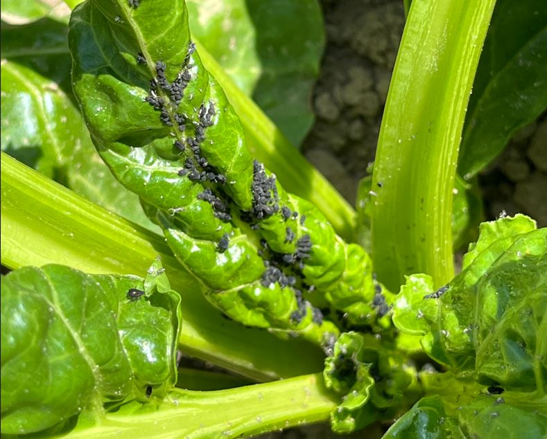 De sorte bedebladlus findes nu i stigende omfang i roemarkerne, men med meget stor variation mellem markerne. I en del marker er skadetærsklen for bekæmpelse overskredet med kolonidannelse på mere end 50 % af planterne, og der er endnu ikke set tegn på begyndende parasittering. Undersøg derfor egne marker om der er behov for bekæmpelse.